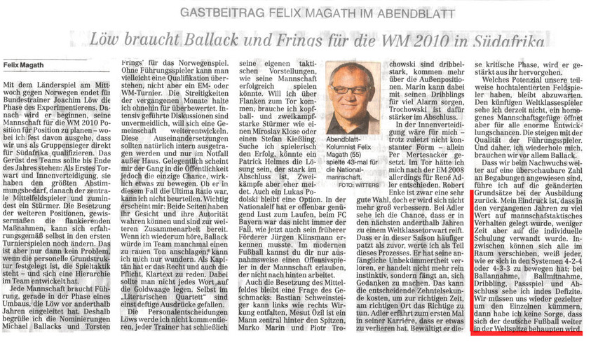"Wir müssen uns wieder gezielter um den Einzelnen kümmern, dann habe ich keine Sorge, dass sich der deutsche Fußball weiter in der Weltspitze behaupten wird"