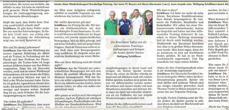 Prof. Schöllhorn: Wenn die Anfrage kommt. Aber im Ernst: Wir fangen jetzt mit dem differenziellen Training in Hasloh an. Dort entsteht das erste bundesweite Fußball-Leistun